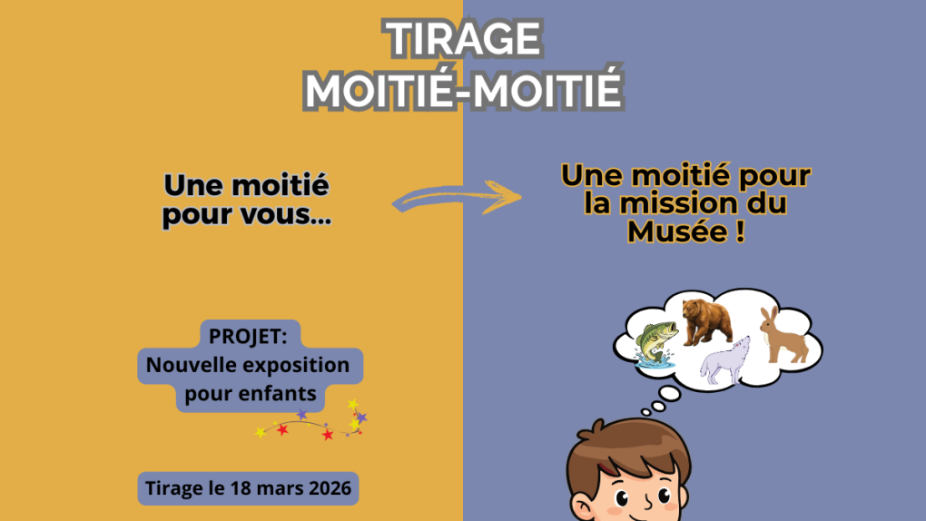 La Fondation du Musée POP organise un tirage moitié-moitié durant la relâche scolaire. En participant, vous courez la chance de remporter la moitié de la cagnotte. L’autre moitié sera investie directement dans le développement de la nouvelle exposition destinée aux enfants.