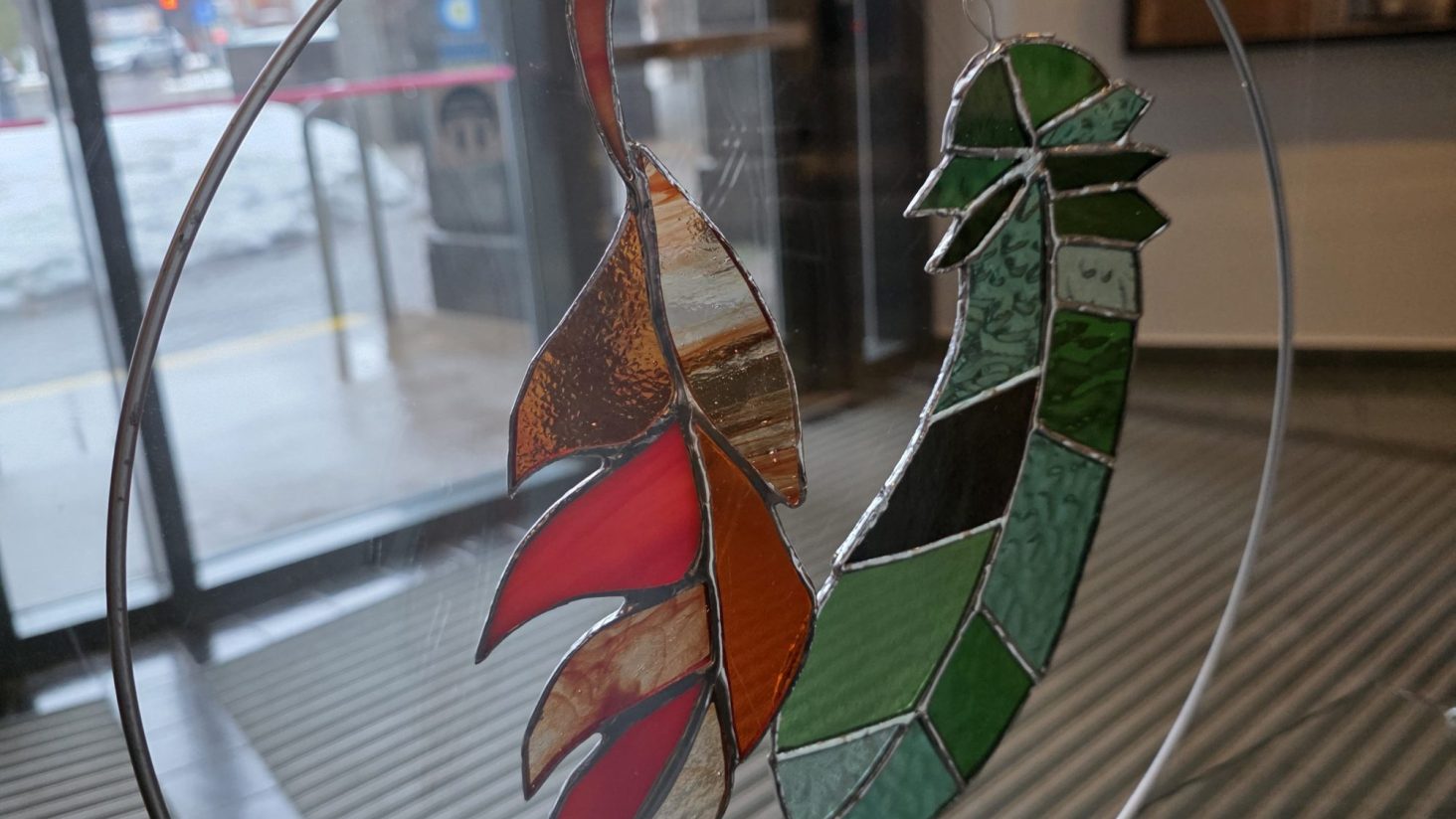 Les élèves ont d’abord fait l’examen de différentes plumes et produit quatre croquis. Par la suite, ils ont choisi la forme qui les intéressait le plus. Ils ont créé un gabarit et sélectionné des verres opaques et transparents. Chaque morceau de couleurs diverses devait s’harmoniser. De plus, la coupe et le meulage du verre furent des tâches demandant de la minutie. Et pour compléter, ils ont enrubanné le verre de cuivre et ils ont soudé avec de l’étain.